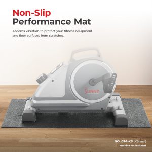 The Sunny Health & Fitness Gym Equipment Mat is essential for protecting your floors and carpet from the wear and tear of a treadmill or other indoor exercise equipment. Made with high-density PVC foam material for greater durability and comfort. It features a soft, textured base, perfect for vibration and noise reduction. The Sunny Health & Fitness Floor Protector Mat is lightweight, non-slip, water resistant, and very easy to clean.