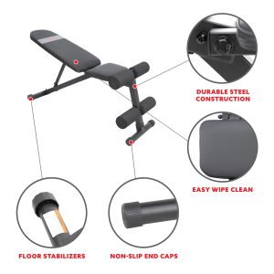 Adjustable weight benches are the cornerstone of any strength training home gym. The Sunny Health & Fitness Adjustable Incline / Decline Weight Bench – SF-BH620038 is the ultimate in value, versatility, and useability. Designed and constructed with high-strength steel, it can hold a maximum weight capacity of 360 lbs. The extra-large backrest offers superior comfort and padding as well as support so you can focus on making those gains.