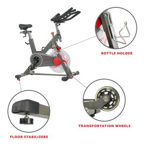 Power your next cardiovascular exercise with the SF-B1913 Training Cycling Bike by Sunny Health and Fitness. Keep your feet secure by using the universal toe cages or by using SPD-compatible footwear. Tailor the bike by adjusting the 4-way adjustable bike seat and handlebars (leg inseam 29 inches to 39 inches). Take hold of the multi-grip handlebars to switch up your riding style and reduce fatigue during longer rides in one grip position. Grab the hand pulse sensors on the handlebars to monitor your heart rate for increased cardiovascular workout efficiency. Enjoy a smooth and quiet belt-drive mechanism that engages the hefty 44 lb flywheel. Designed with magnetic resistance, this indoor cycle bike can apply resistance precisely with its micro-adjustment knob or swiftly bring the flywheel to a complete stop by pressing on the knob. Use the on board performance monitor to track your speed, cadence, distance, calories, time, and pulse.
