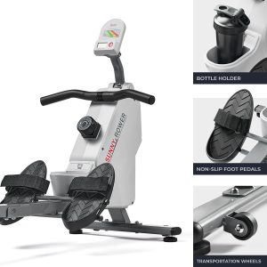 Rowing machines have never been compact and light till now with this top-of-the-line rower from Sunny Health & Fitness! Connect your rower via Bluetooth and start rowing with our certified trainers through our SunnyFit® App! Without any sacrifices to function and materials, this rower offers all of the necessities for an intense yet smooth and enjoyable workout in the comfort of your home. Built with an improved 8-level, magnetic resistance system, cushioned seat, and anti-slip foot pedals, this rower is crafted for performance and convenience. This indoor rowing machine comes with a built-in digital monitor that keeps track of your calories, distance, time, and total count to stay on track of your progress. This product will withstand the test of time while taking up minimal space when in use and stored away.