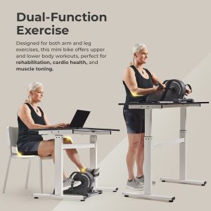 Discover the versatile benefits of our mini bike, designed for both lower and upper body workouts with low-impact exercise capabilities that minimize stress on joints. Ideal for fitness enthusiasts, rehabilitation, cardiovascular health, and muscle toning, it’s particularly suited for elderly users, offering motorized under-desk pedaling options that promote mobility and rehabilitation. Connect seamlessly via the SunnyFit App to customize and track your fitness journey, with access to over 1000 workouts and 10,000 routes worldwide. Experience quiet and adjustable training with 18 speed levels and fingertip control through a remote, monitoring speed, time, and pre-set programs effortlessly. Equipped with auto-stop safety features and compact at 21.5 x 16.5 x 10.4 inches and 15.9 pounds, it includes an easy-carry handle, adjustable foot straps, and anti-slip pedals for convenient placement and hassle-free assembly, backed by over 20 years of excellence from Sunny Health & Fitness, ensuring a secure and enjoyable workout experience for every user.