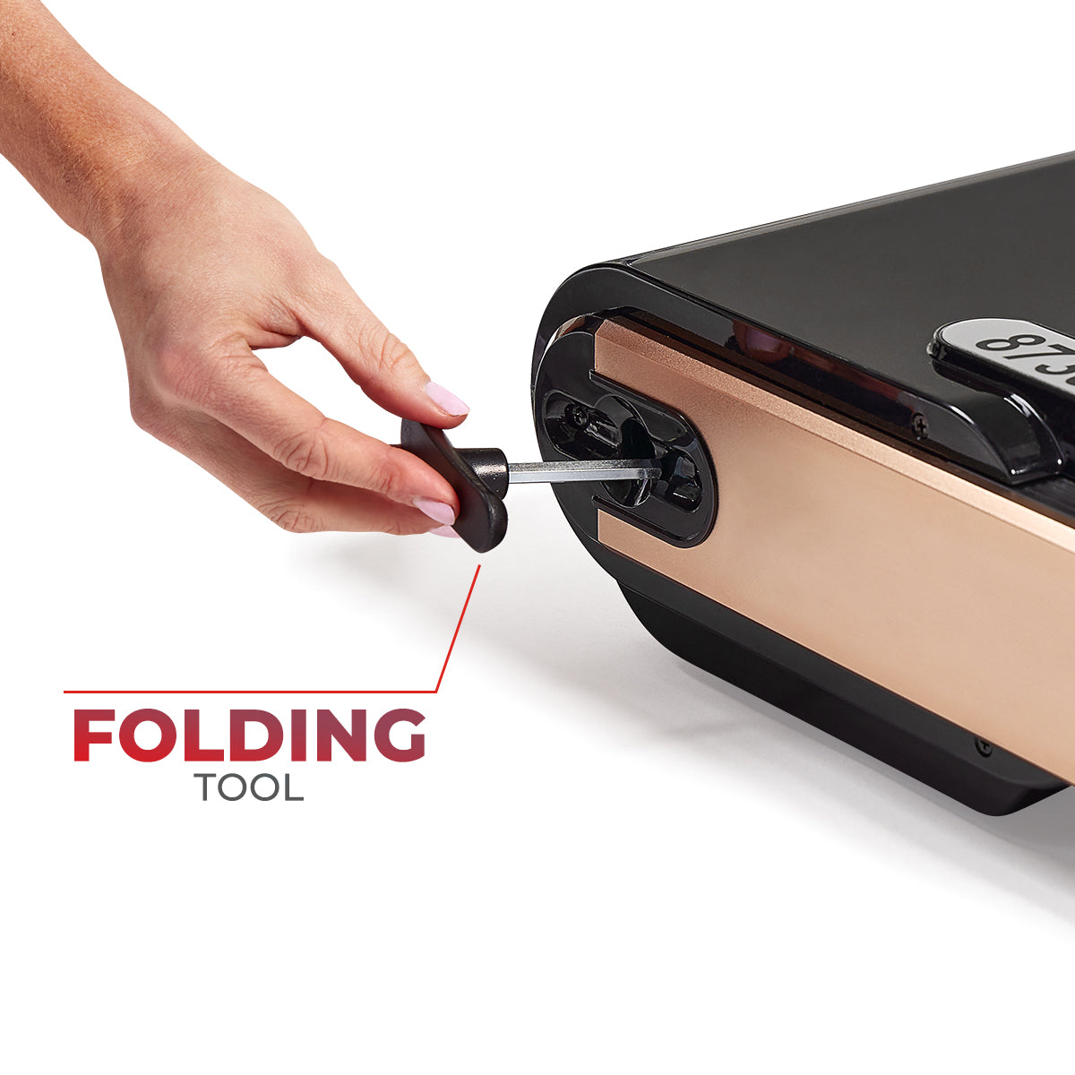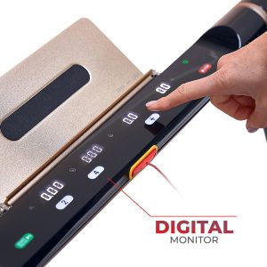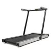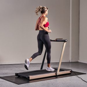 Pack a powerful workout in a space-saving design with the Slim Folding Motorized Treadmill by Asuna. Supporting up to 220 lb, this running deck (49L x 17.75W in) has shock absorption technology that reduces impact on your joints when you exercise. Take advantage of the 2.5-peak horsepower motor on the indoor treadmill, which can support walking and running speeds between 0.6 – 8.0 MPH. Use the 4-window display on the treadmill to visualize your workout performance. Keep track of distance, time, calories burned, and speed at a glance. Make quick adjustments to speed by using the on-console quick buttons. And take advantage of the built-in pedometer to monitor your total steps during your exercise sessions. Mount your favorite smart device on the treadmill with the on-console tablet holder. Bump up your workout with your favorite tunes when you connect your music player to the onboard MP3 sound system. Use the included folding tool to securely fold and unfold the treadmill in the instant. Designed with portability in mind, use the transportation wheels to move the treadmill, and store the motorized treadmill under raised surfaces. Use the folding tool that’s located on the base of the treadmill to fold the treadmill flat (measuring 64L x 30.5W x 5.25H in when folded flat) and lock the frame in place.