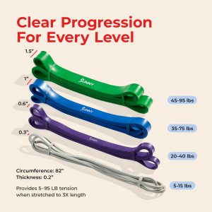 Elevate your strength training exercises by including resistance bands in your fitness routine. Elastic resistance bands offer effective full-body training when working out muscles in your upper and lower body. These workout fitness bands are low-impact and safe for users of all age groups. Incorporate these bands into your yoga stretching session or for added resistance when strength training. Set includes 4 bands of different tensions: 10 LB, 25 LB, 50 LB, and 75 LB.