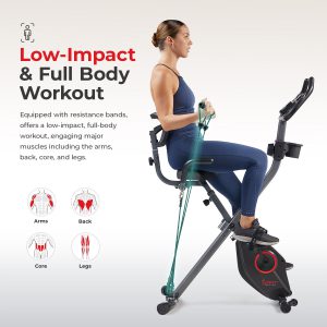 The X-Bike is a comprehensive fitness solution, combining gentle, low-impact full-body workouts with high-level comfort. This cycling bike ergonomic design features an adjustable seat and mesh back for support and ventilation during long sessions. The upright compact structure is ideal for any living space, with a foldable frame and transport wheels for easy mobility and storage. 14 levels of smooth magnetic resistance, accommodating all fitness levels in a quiet exercise atmosphere. The sturdy construction supports up to 300 LB, ensuring durability and safety. Technological integration comes through Bluetooth connectivity, linking users to the SunnyFit App for a personalized fitness journey, complete with a vast array of workouts and interactive global routes.
