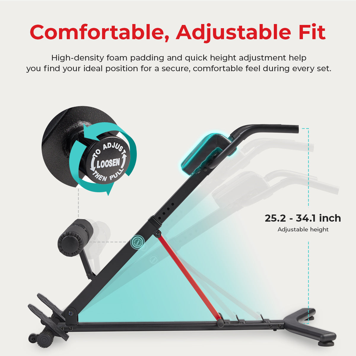 Comfort and stability are built into every contact point. A heavy-duty steel frame (330 lb capacity) creates a solid base, while high-density padding, secure ankle rollers, and non-slip foot support help you stay locked in and focused through each set.