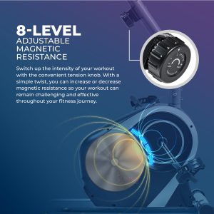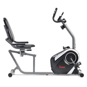 Sit back and workout with the SF-RB4616S Magnetic Recumbent Bike. This bike allows for forward and backward adjustment of the seat without having to get up. The self-leveling pedals make it easy to place your feet in the straps. Maximize your workouts with the adjustable 8-level magnetic tension control system. Track your workout progress with the LCD digital monitor that displays: Scan, Time, Speed, Distance, Calories, Odometer, and Heart Rate. Convenient handles with pulse grip sensors will allow monitoring of heart rate and workout intensity. The extended weight capacity can hold up to 300 lbs. Start today towards a healthier and happier you with the Sunny Health & Fitness SF-RB4616S Magnetic Recumbent Bike.