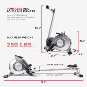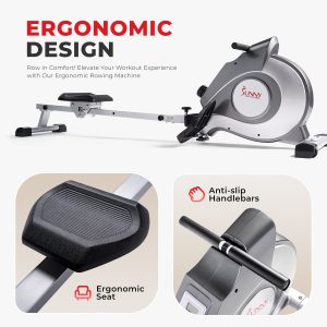 Row into shape with the top-of-the-line Sunny Health & Fitness Magnetic Rowing Machine! This rower offers all of the necessities for an intense yet enjoyable rowing workout in the comfort of your own home. With a newly improved smoother and quieter magnetic tension system with 8 levels of adjustable tension, a convenient large LCD console, a fully padded seat, larger anti-slip foot pedals, and built-in transportation wheels, the Sunny Health & Fitness Magnetic Rowing Machine is designed for convenience while also providing the challenging feel of an outdoor rowing experience. The quality of its heavy-duty steel mainframe is built to withstand time and go the distance for users of all skill levels!