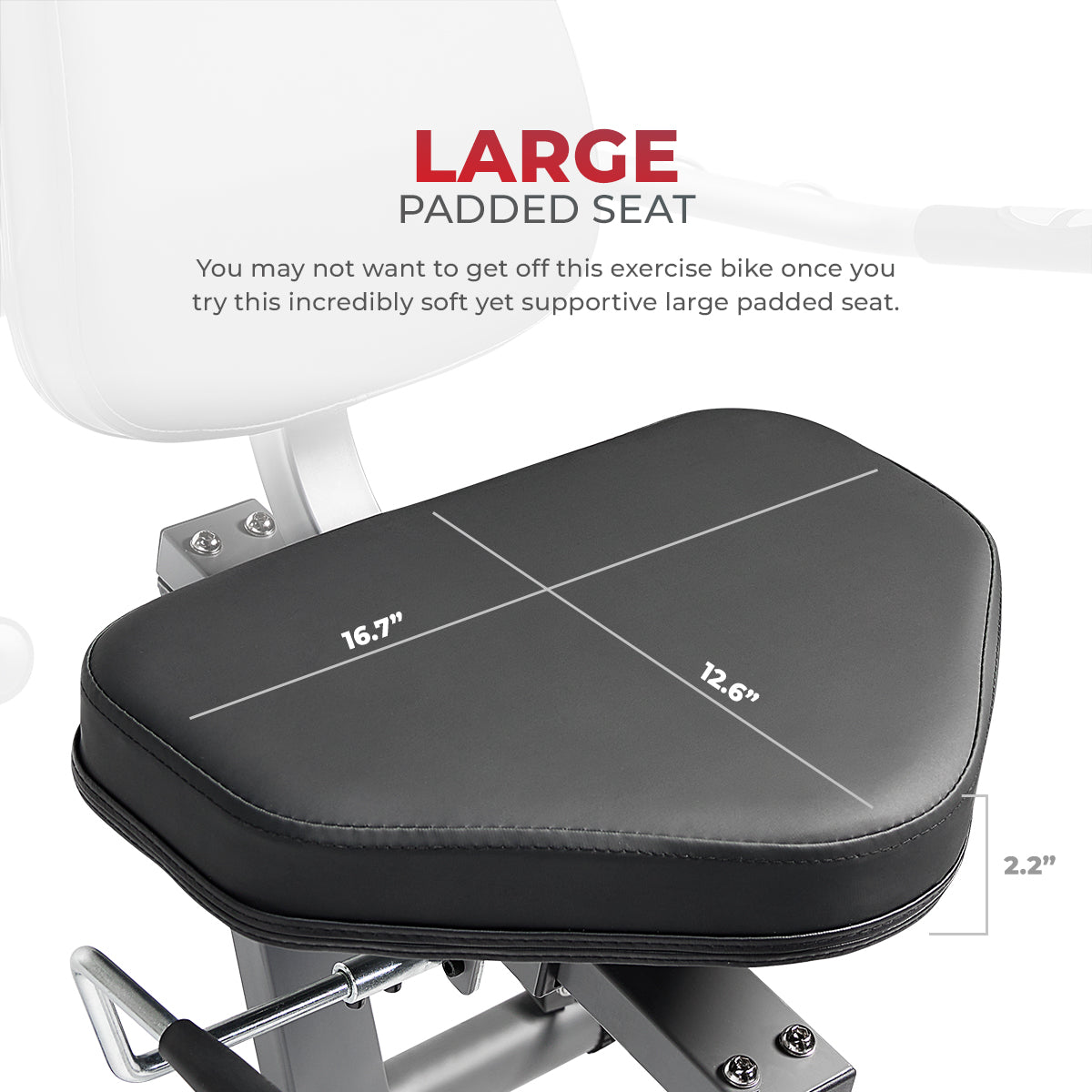 The perfect balance of performance, value, comfort, technology, and convenience has arrived with the Sunny Health & Fitness Performance Interactive Series Recumbent Exercise Bike – SF-RB420031. Get even more connected with your fitness with the SunnyFit® APP available on Google Play, or the Apple App Store. Incorporate resistance bands into your cardio biking sessions to add a whole new level of fitness. Whether you’re a senior looking to maintain an active lifestyle, too busy to get to the gym, or just enjoy working out in the comfort of your own home, the Sunny Health & Fitness Performance Interactive Series Recumbent Exercise Bike is a Fit for Everyone®.