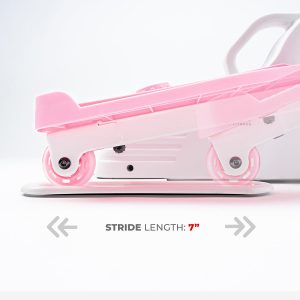 Fight against a sedentary lifestyle with the easily transportable and fully assembled P2030 Pink Magnetic Under Desk Elliptical by Sunny Health & Fitness. This space saving exercise machine can help get your legs moving in a forward motion. Large textured foot pedals prevent slippage while in use. This motorized elliptical is excellent for increasing blood circulation, joint range of motion, and improved lower body muscular endurance. Use the tension knob to select 8 levels of belt drive magnetic resistance paired with low maintenance design to provide a wide variety of exercise intensities to fit your specific needs. Use the central digital monitor to track speed, time, calories, and distance, or choose the scan function to cycle through all workout variables. The 7-inch stride length moves smoothly with integrated wheels along the stable frame. Use the floor stabilizers for an even placement on floor surfaces.
