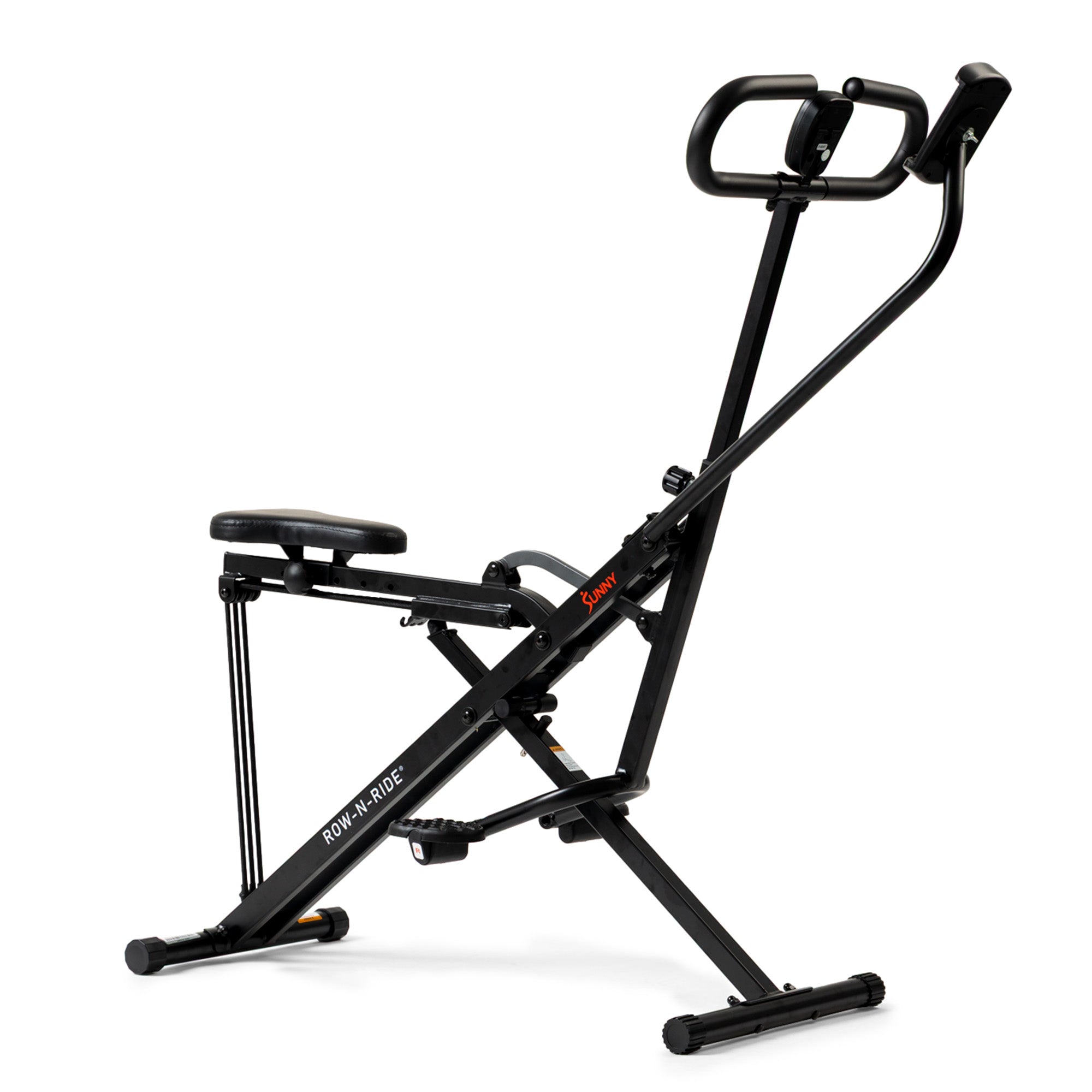 Introducing the Sunny Health & Fitness Smart Upright Row-N-Ride® Exerciser, your all-in-one home fitness solution. This versatile machine combines squats, rowing, glute toning, ab sculpting, and strength training in one compact device. Customize squat workouts with adjustable settings at 30, 60, and 90 degrees. Stay connected with Bluetooth syncing for progress tracking and access to a library of training content. The LCD monitor tracks calories, duration, and count. With 4 resistance levels and adjustable handlebars and seat, it suits users of all sizes. Easy assembly and sturdy frame ensure reliability. Transform your home workouts with confidence and convenience today!