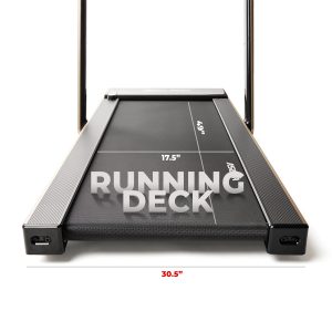 Pack a powerful workout in a space-saving design with the Slim Folding Motorized Treadmill by Asuna. Supporting up to 220 lb, this running deck (49L x 17.75W in) has shock absorption technology that reduces impact on your joints when you exercise. Take advantage of the 2.5-peak horsepower motor on the indoor treadmill, which can support walking and running speeds between 0.6 – 8.0 MPH. Use the 4-window display on the treadmill to visualize your workout performance. Keep track of distance, time, calories burned, and speed at a glance. Make quick adjustments to speed by using the on-console quick buttons. And take advantage of the built-in pedometer to monitor your total steps during your exercise sessions. Mount your favorite smart device on the treadmill with the on-console tablet holder. Bump up your workout with your favorite tunes when you connect your music player to the onboard MP3 sound system. Use the included folding tool to securely fold and unfold the treadmill in the instant. Designed with portability in mind, use the transportation wheels to move the treadmill, and store the motorized treadmill under raised surfaces. Use the folding tool that’s located on the base of the treadmill to fold the treadmill flat (measuring 64L x 30.5W x 5.25H in when folded flat) and lock the frame in place.