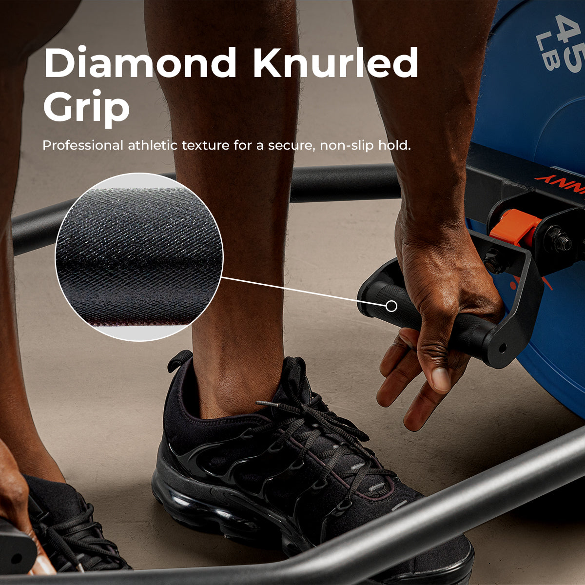 One of the most versatile barbells in every home gym has been made even more functional in the Sunny Strength Olympic Barbell Hex Bar – OB-TRAP. Featuring a unique swivel handgrip, execute deadlifts with perfection every time. You can also switch up your grips for a unique feel on shoulder presses, bent-over rows, curls, carries, with a power rock or weight bench, and others. Knurled diamond-patterned enhances the tactile grip and helps to prevent slippage.