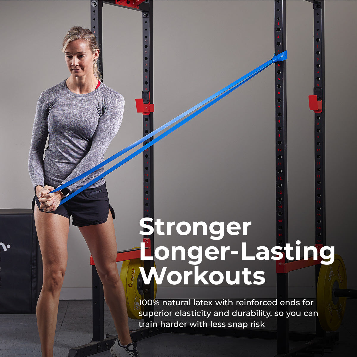 Elevate your strength training exercises by including resistance bands in your fitness routine. Elastic resistance bands offer effective full-body training when working out muscles in your upper and lower body. These workout fitness bands are low-impact and safe for users of all age groups. Incorporate these bands into your yoga stretching session or for added resistance when strength training. Set includes 4 bands of different tensions: 10 LB, 25 LB, 50 LB, and 75 LB.