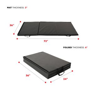 Start training with the No. 064 Folding Gym Mat by Sunny Health and Fitness. This fitness mat measures at 3 ft. wide and 6 ft. long giving you plenty of room for yoga, Pilates, or stretching. Long lasting foam supports your knees and elbows while performing push-ups, sit-ups or other floor exercises. Fastener straps can attach to multiple Sunny Health and Fitness gym mats to create an even larger space. Nylon handles make the mat totally portable and great for workouts outdoor.